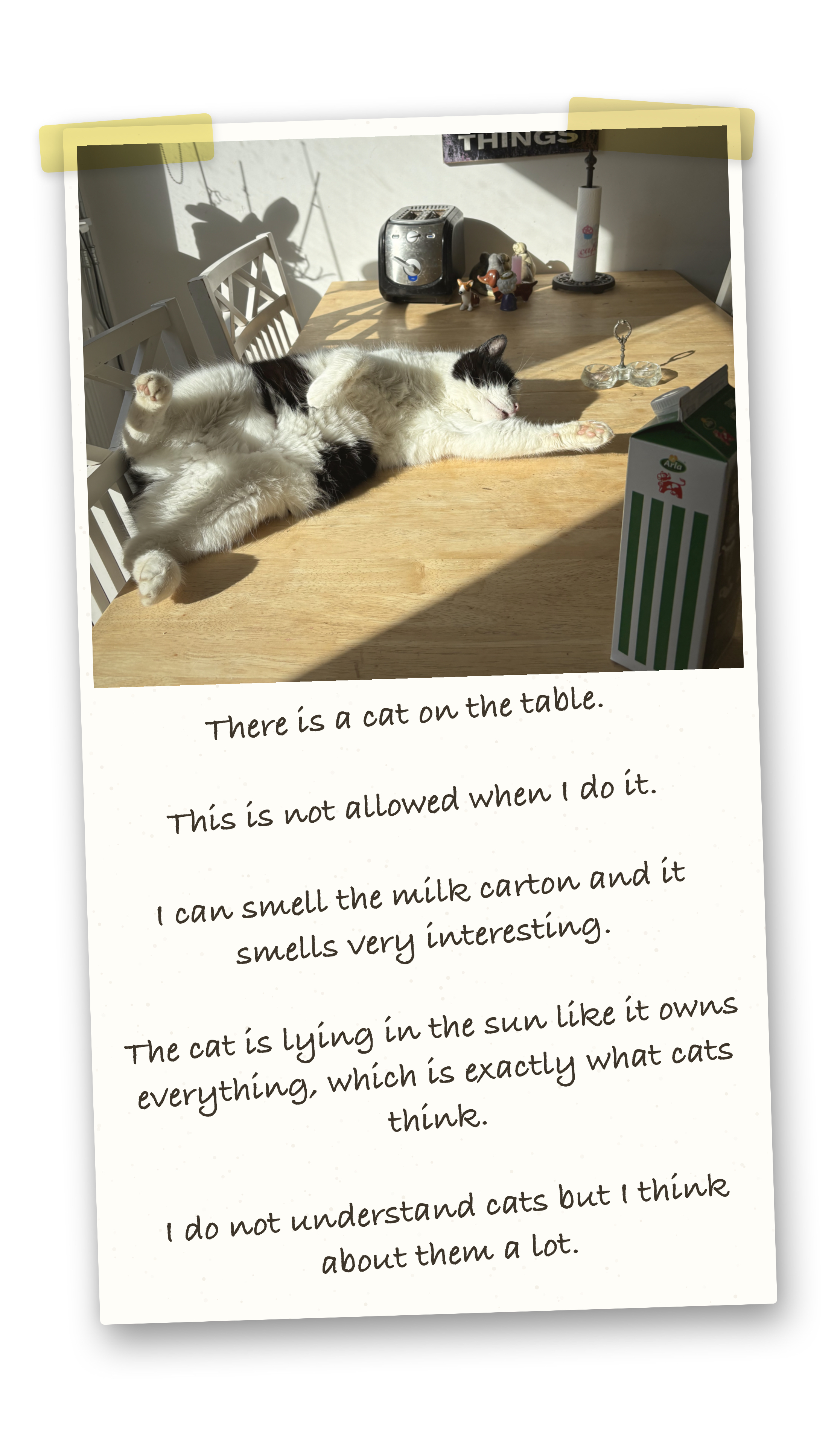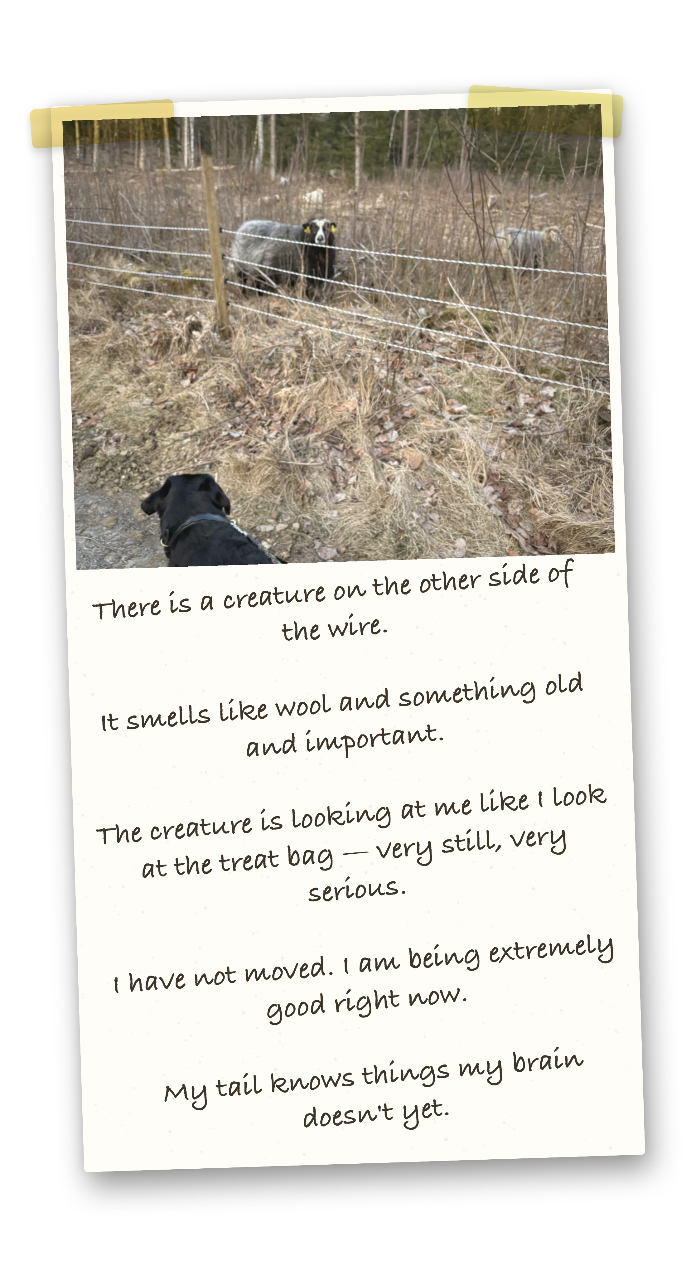 A small text appears — calm, curious, a little puzzled. Exactly how your dog would have seen it.